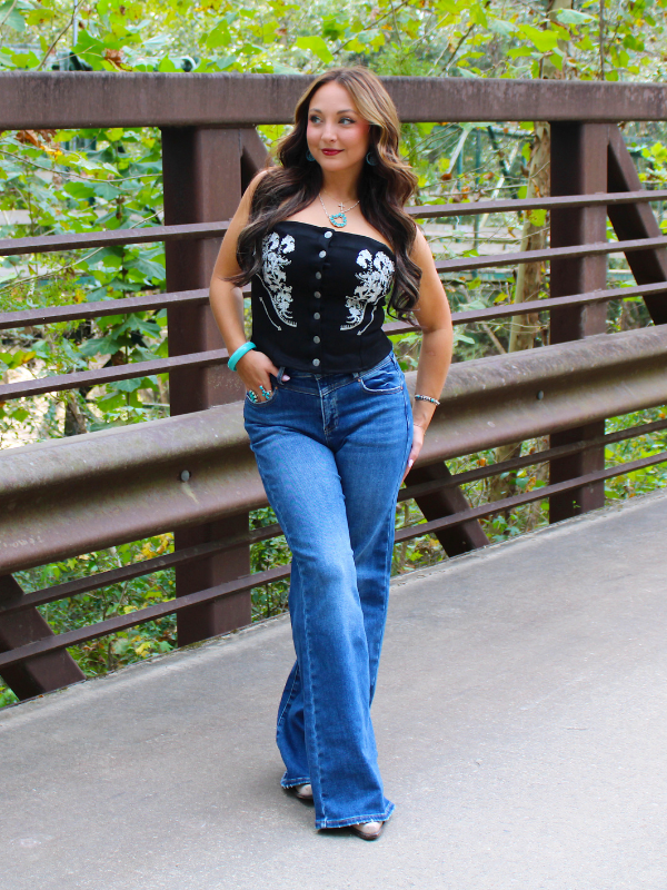 Never Ever Basic Jeans Cut Out Side with Rhinestones
