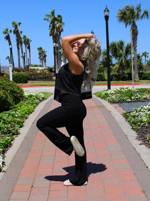 High Tide Sleeveless Crop Top Crew Neck, Black Wash