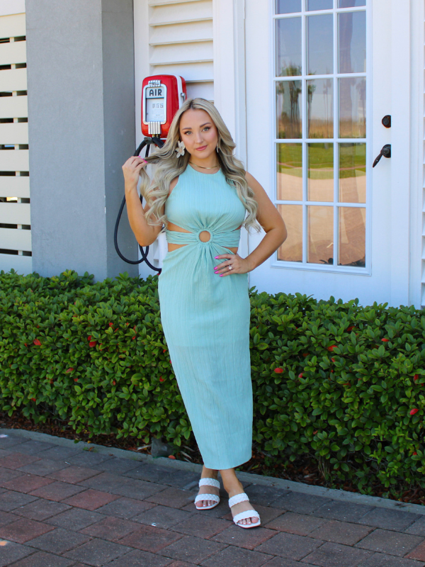 On Island Time Maxi Dress Tie Back with Open Sides, Sage