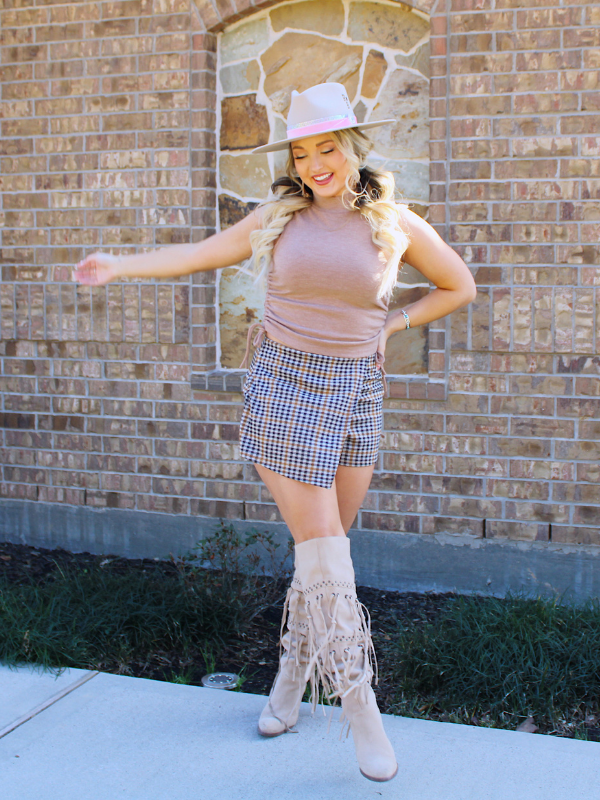 Taupe Trap Sleeveless Mock Neck Side Tie Top, Taupe